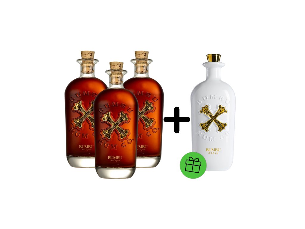 Vychutnejte si oblíbenou značku Bumbu v akčním setu. Ke třem láhvím Bumbu Original získáte Bumbu Cream v hodnotě 579,- Kč ZDARMA