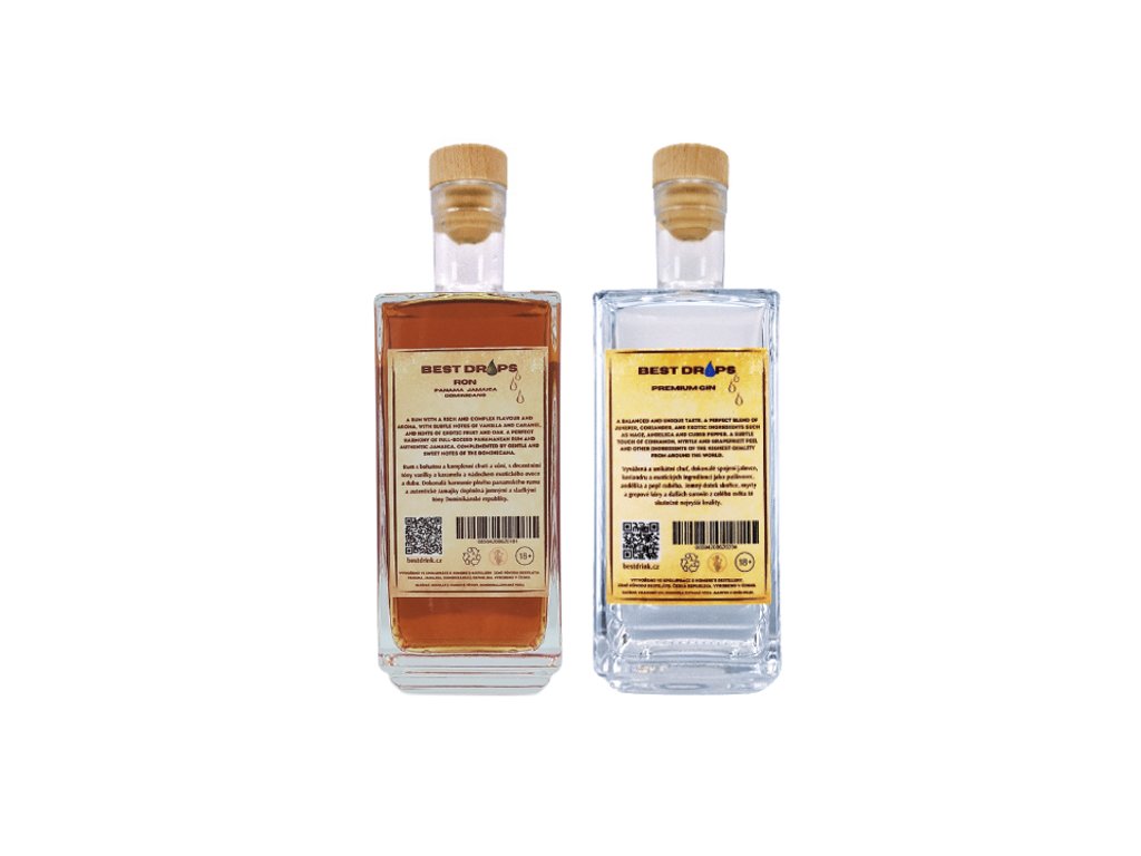 Naše nabídka se dále rozšířila o BEST DROPS Premium Gin. Tento gin je destilován z pečlivě vybraných přírodních ingrediencí, jako jsou jalovec, grepová kůra a skořice, které mu dodávají komplexní a vyváženou chuť. Design láhve a etikety podtrhuje prémiový charakter ginu a jeho spojení s přírodními ingrediencemi.