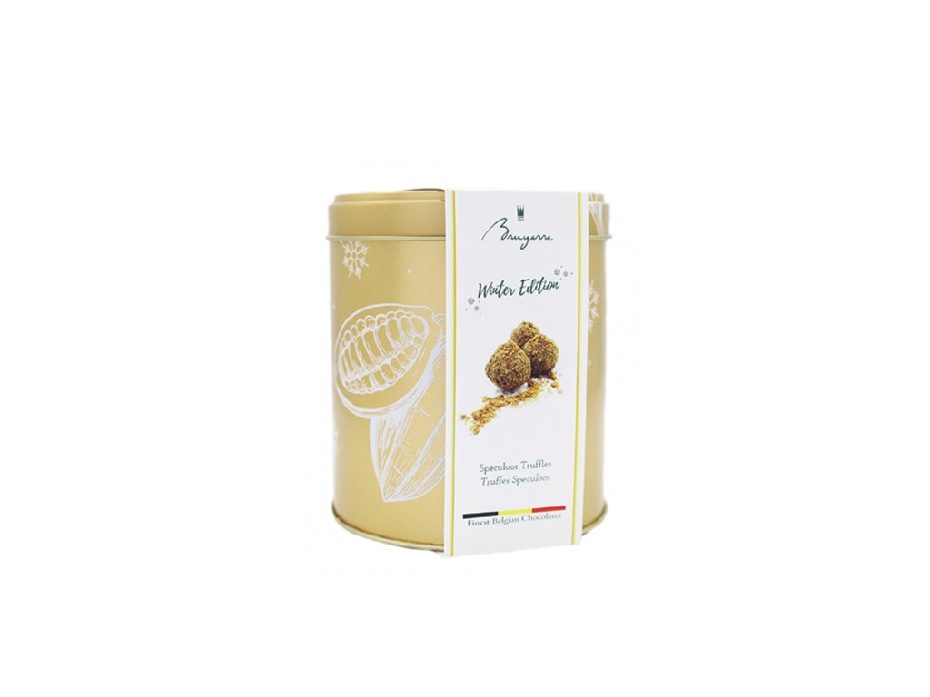 Bruyerre, belgická značka s tradicí sahající do roku 1909, vyrábí své pralinky ručně z prvotřídních ingrediencí a bez kompromisů v kvalitě. Zlatá plechová dóza s elegantním zimním designem činí z lanýžů Speculoos Truffes dokonalý dárek pro milovníky čokolády i stylový doplněk sváteční tabule.