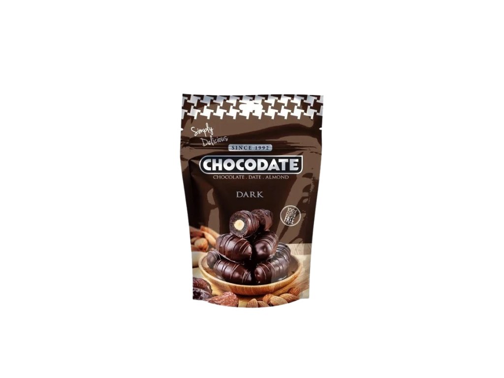 Chocodate Dark – dubajské datle plněné mandlí v hořké čokoládě jsou elegantní odpovědí na touhu po méně sladkém, ale zároveň plně uspokojujícím sladkým pokušením. Základ tvoří pečlivě vybrané vyzrálé datle, ručně plněné praženou mandlí a potažené vrstvou kvalitní tmavé čokolády s vysokým podílem kakaa.