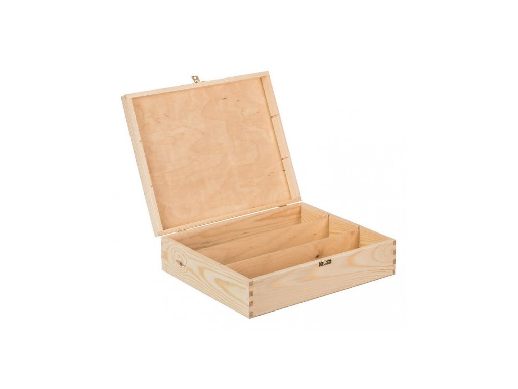 Krabička je rozdělená na tři přihrádky, stěnu lze však jednoduše z krabičky vyjmout.