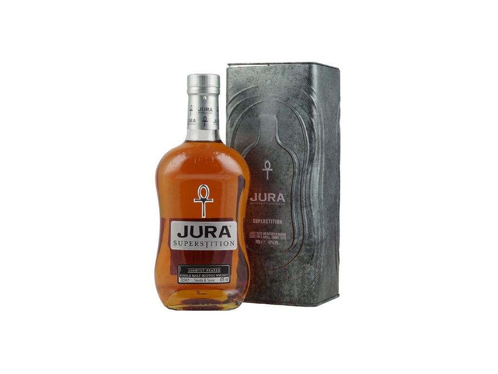 Isle of Jura Superstition je mírně nasládlá, na začátku náznak sherry, později přechází do slané příchutě. Aroma po sherry, dubu, slabě rašelinové. Velmi jemná.