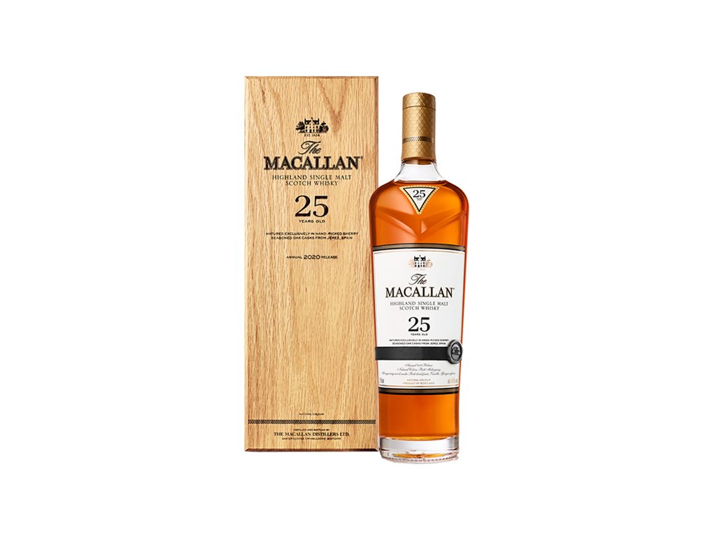 Macallan 25 Y.O. Sherry Oak je považován za jednu z nejluxusnějších a nejvyhledávanějších single malt whisky na světě. Jeho dlouhé zrání v sudech po sherry Oloroso mu propůjčuje hluboký a komplexní charakter, který je vysoce ceněn znalci i sběrateli.