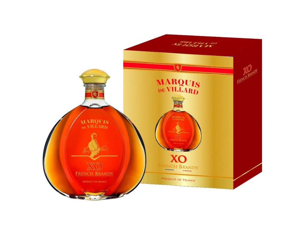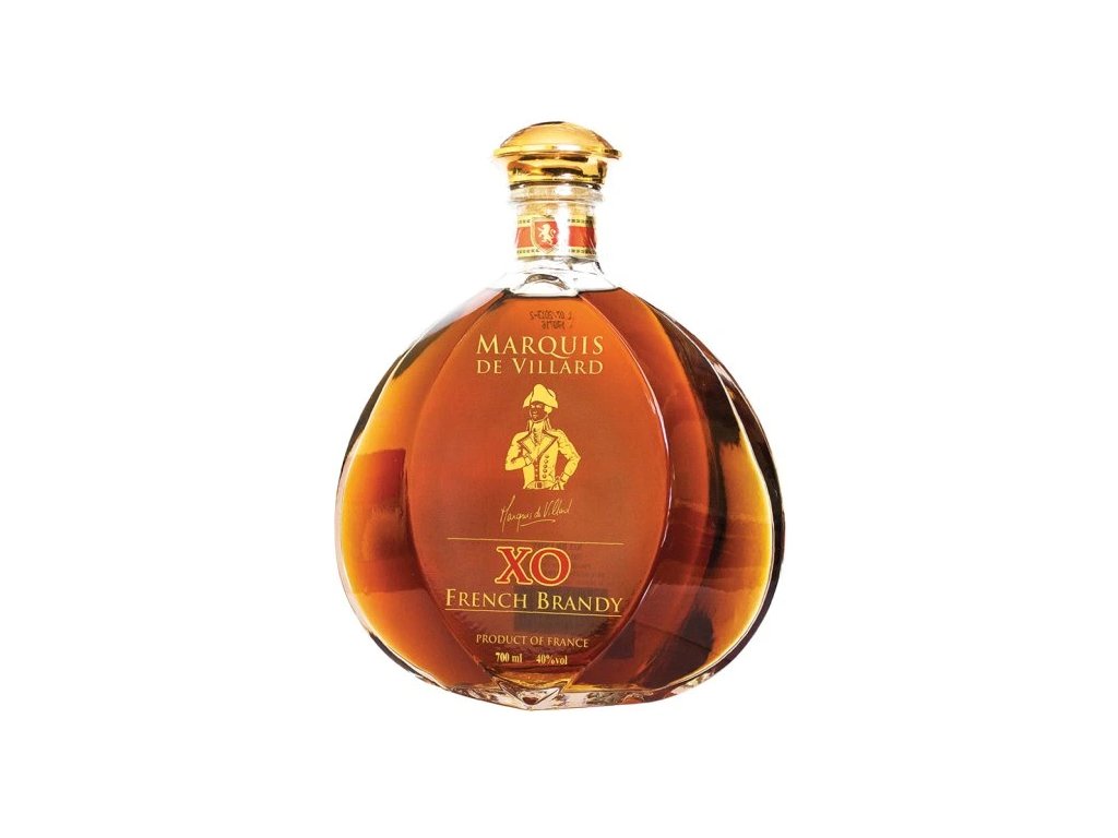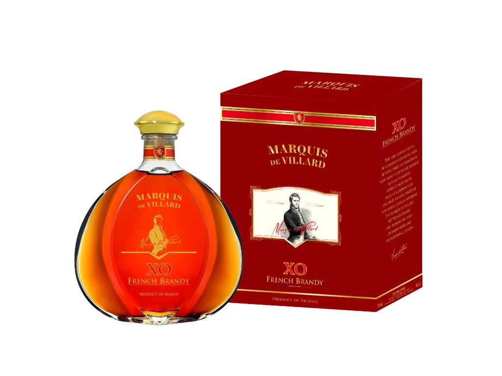 Marquis de Villard XO 40% alk. Francouzská brandy XO špičkové kvality je vyráběna v oblasti Charente (Cognac) ve Francii. Na výrobu eaux-de-vie se používají pečlivě vybrané hrozny bílých i modrých odrůd. Elegantní a robustní brandy.