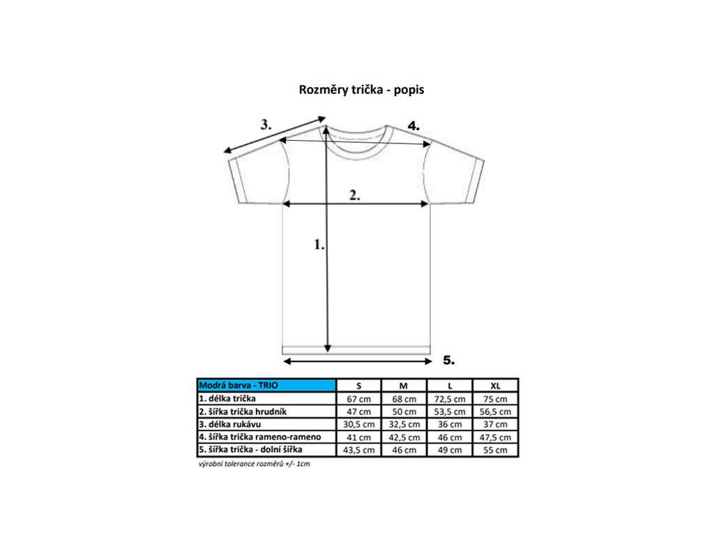Rozměry trička a popis – viz foto